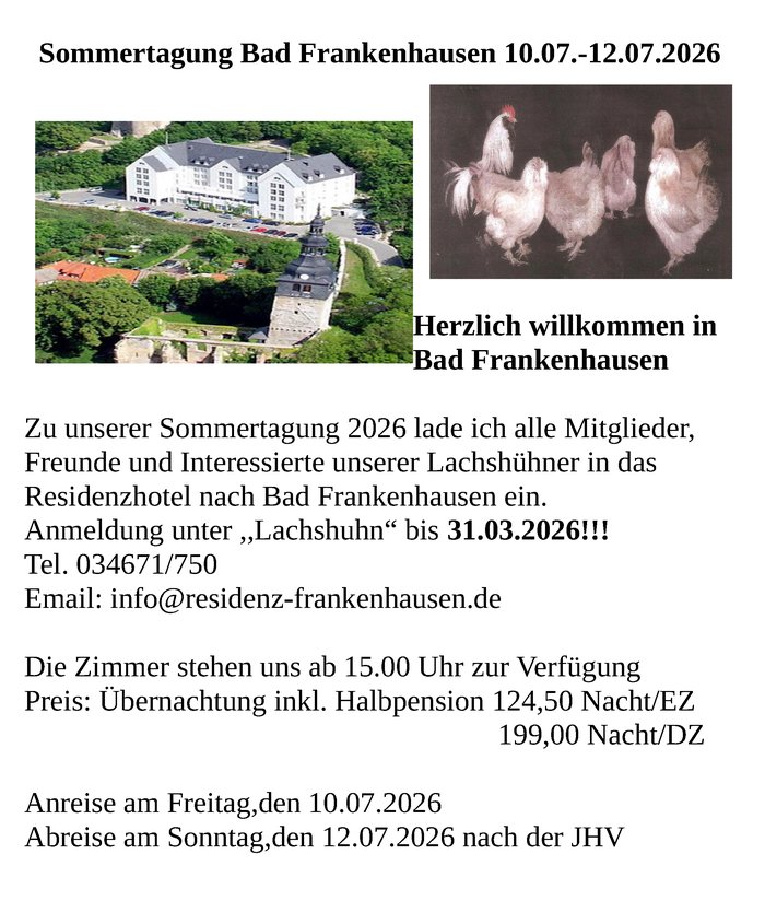 Hierzu sind alle Züchter und Zuchtfreunde der Lachshühner herzlich willkommen.
